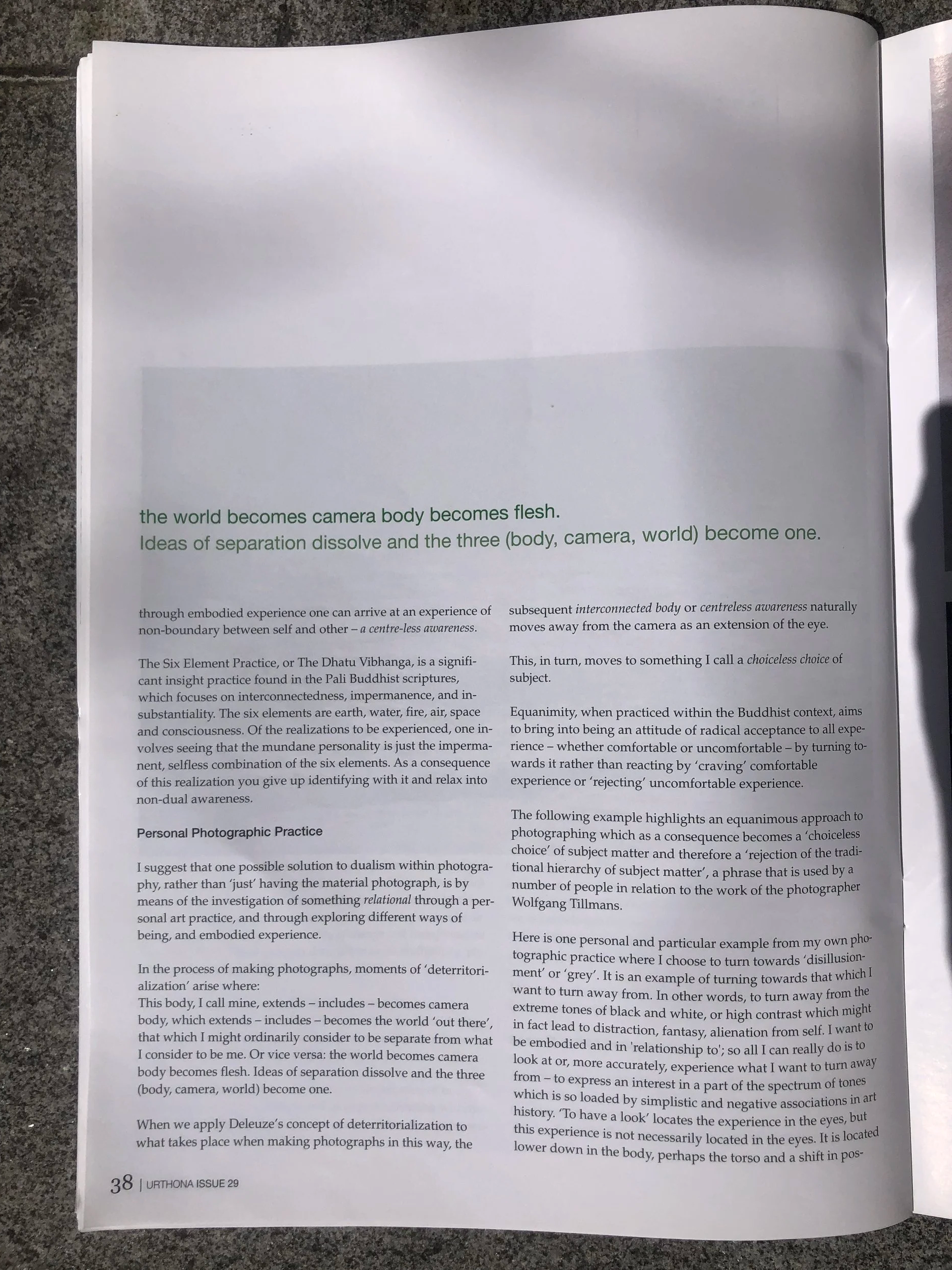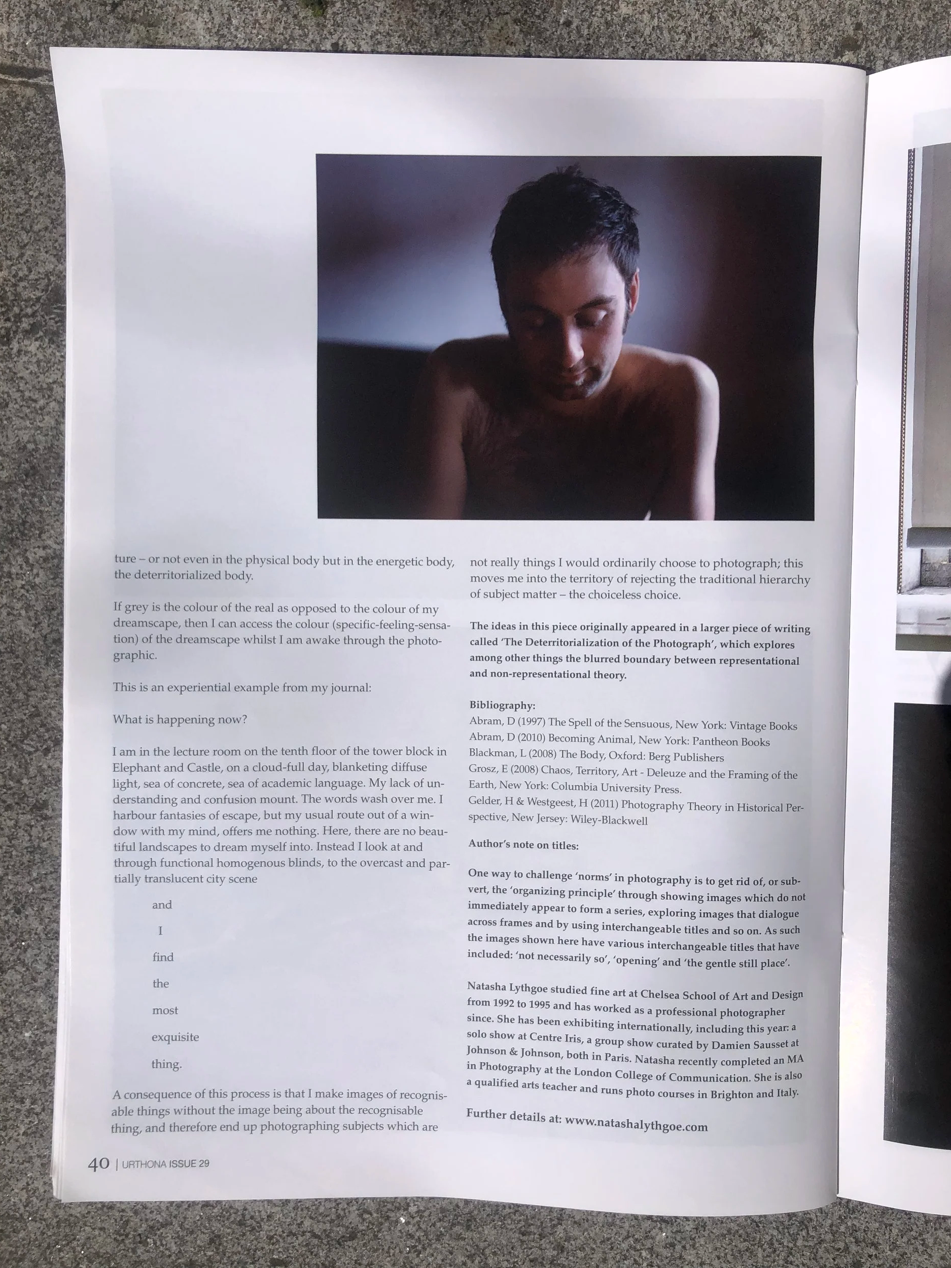 Below you’ll find photos of the article that Urthona Buddhism and Arts Magazine published about my work back in 2014. It was an edited excerpt from my much longer MA thesis called, The Deterritorialisation of the Photograph.